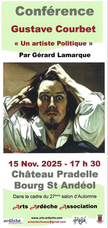 le cadre du 27ème Vous propose une CONFERENCE samedi 15 novembre à 17h30 au Château Pradelle sur le thème de : Gustave Courbet «